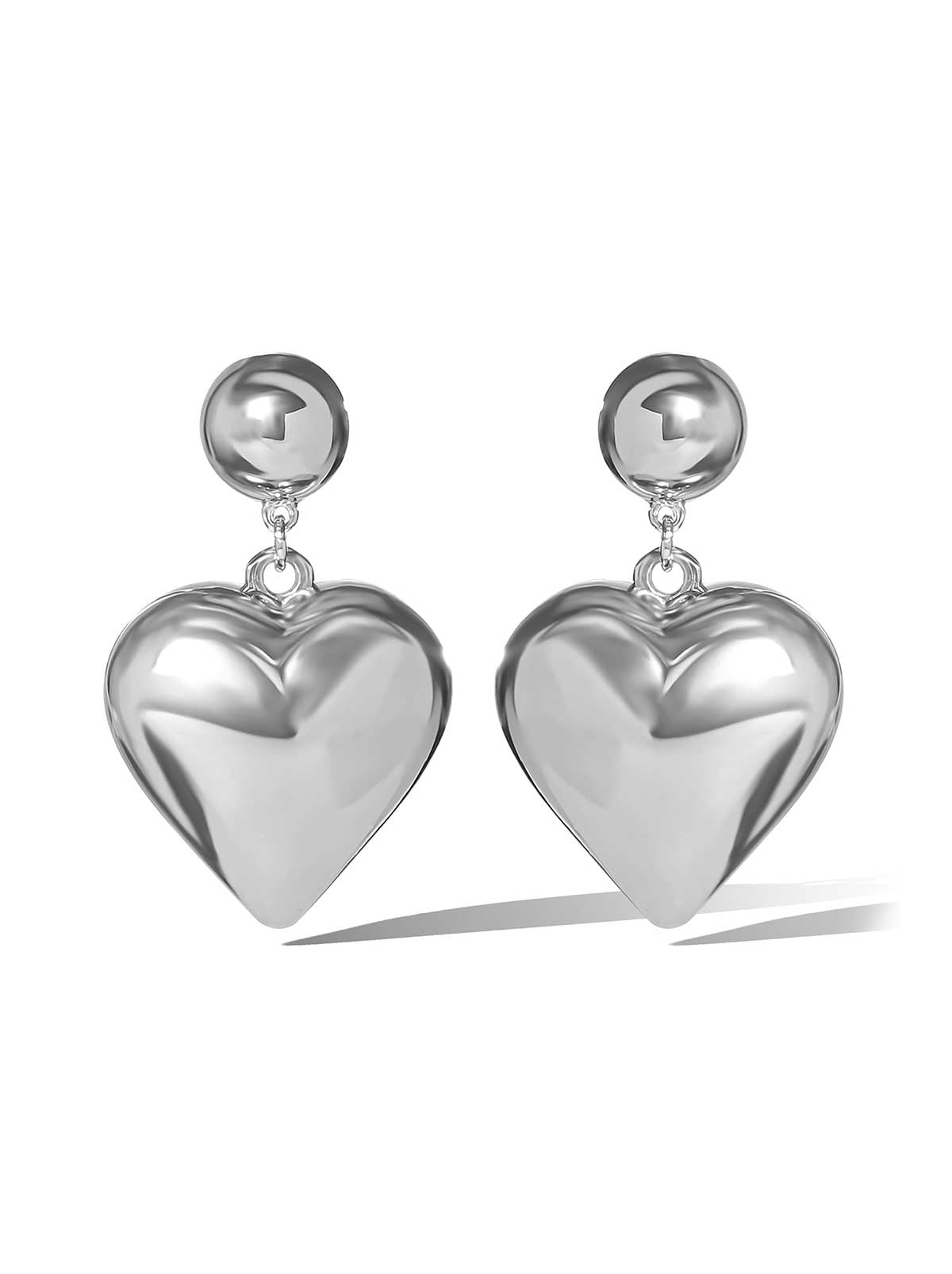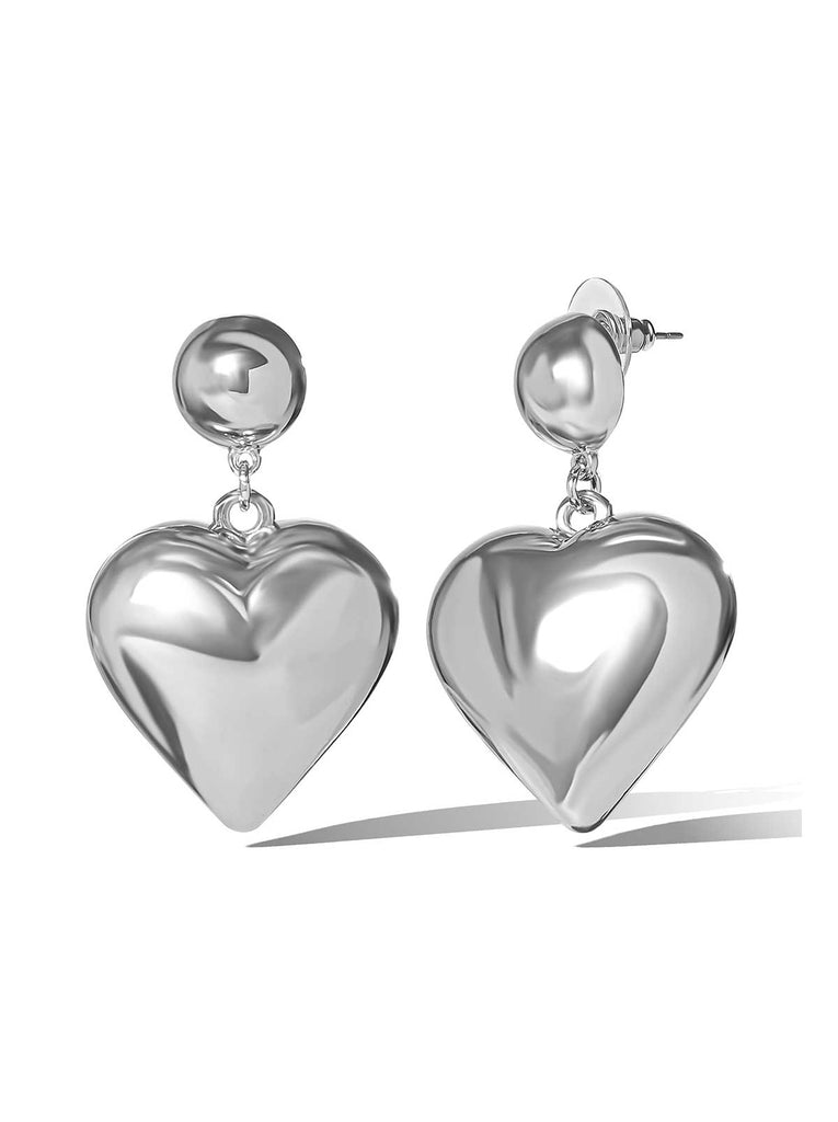 Fall in love with statement style. These bold puff heart drop earrings feature a high-shine silver-tone finish and a smooth, sculptural silhouette. Playful yet polished, they add a touch of charm and modern edge to everything from casual looks to evening outfits.