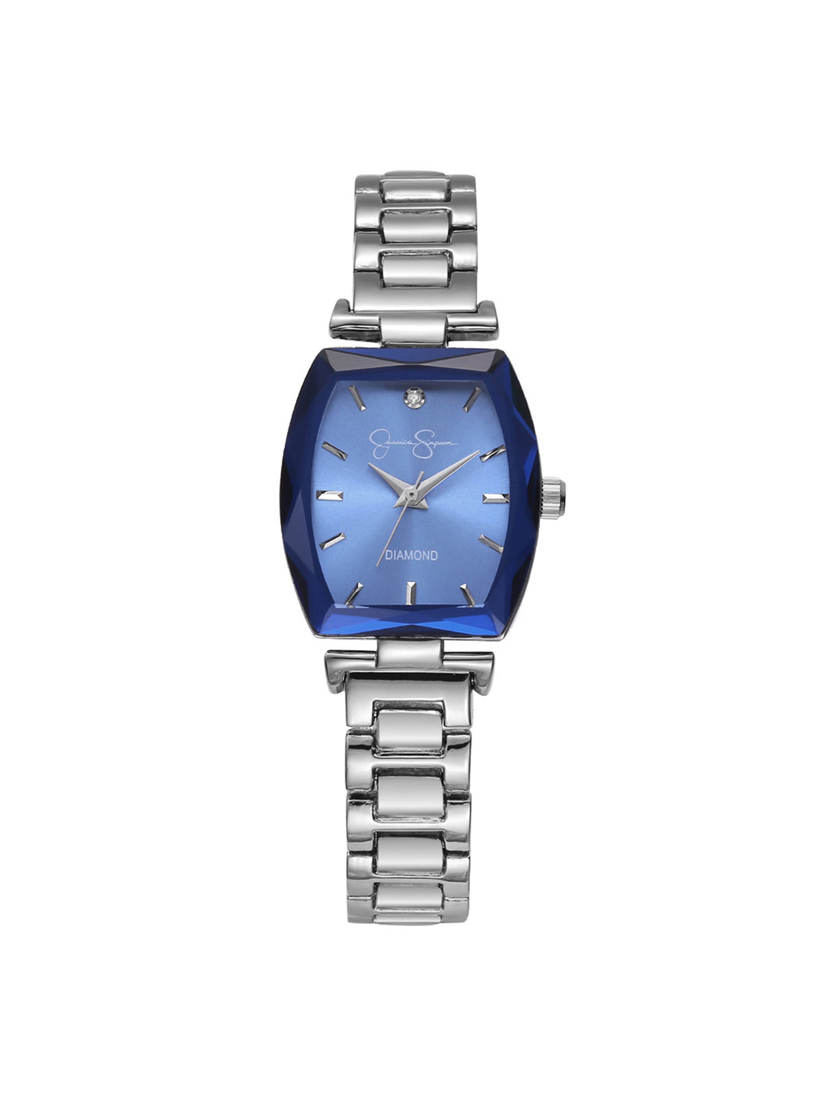 Faceted Bezel Bracelet Watch in Silver & Blue