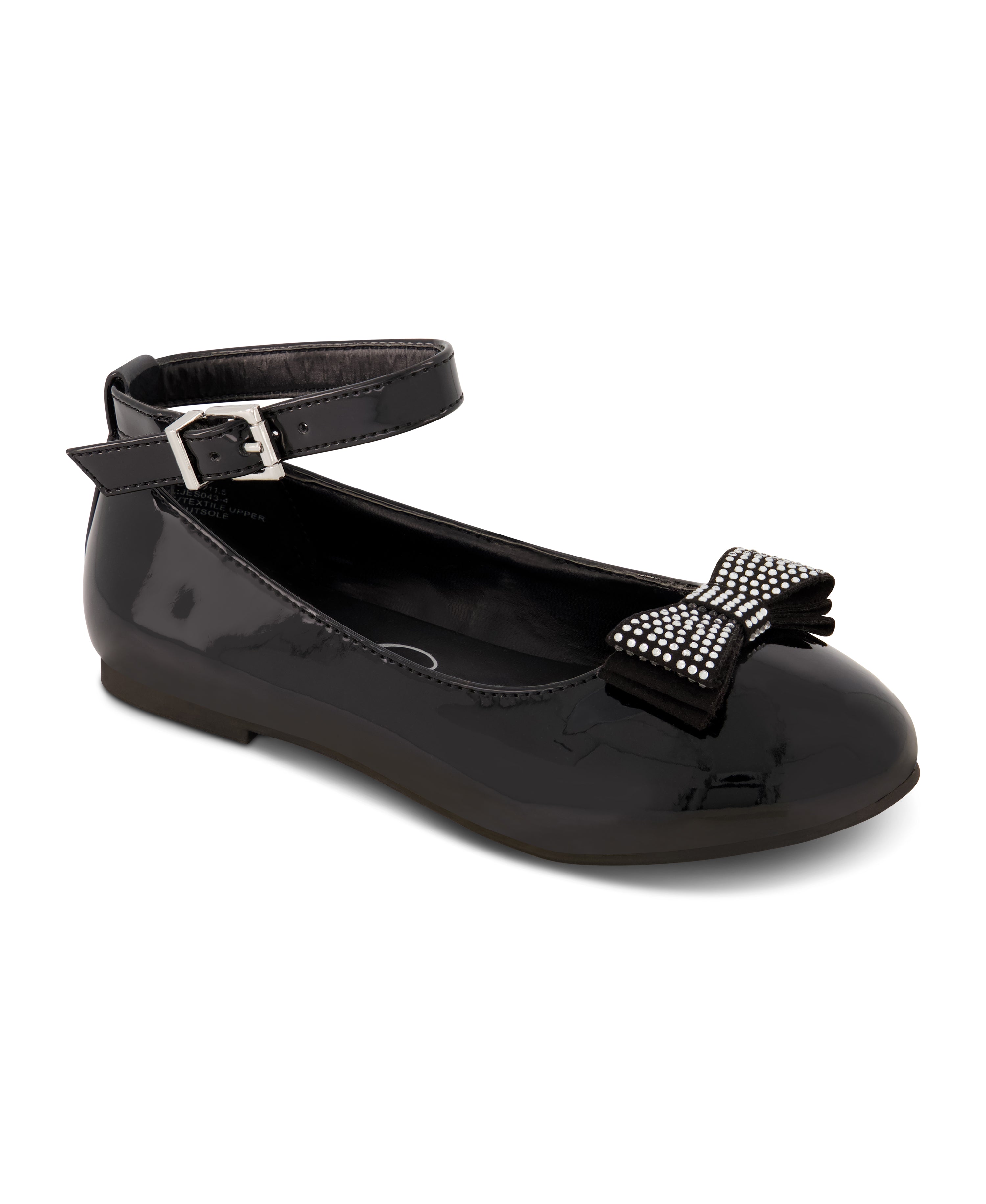 Amy Jeweled Bow Ballet Flat and Adjustable Strap in Black