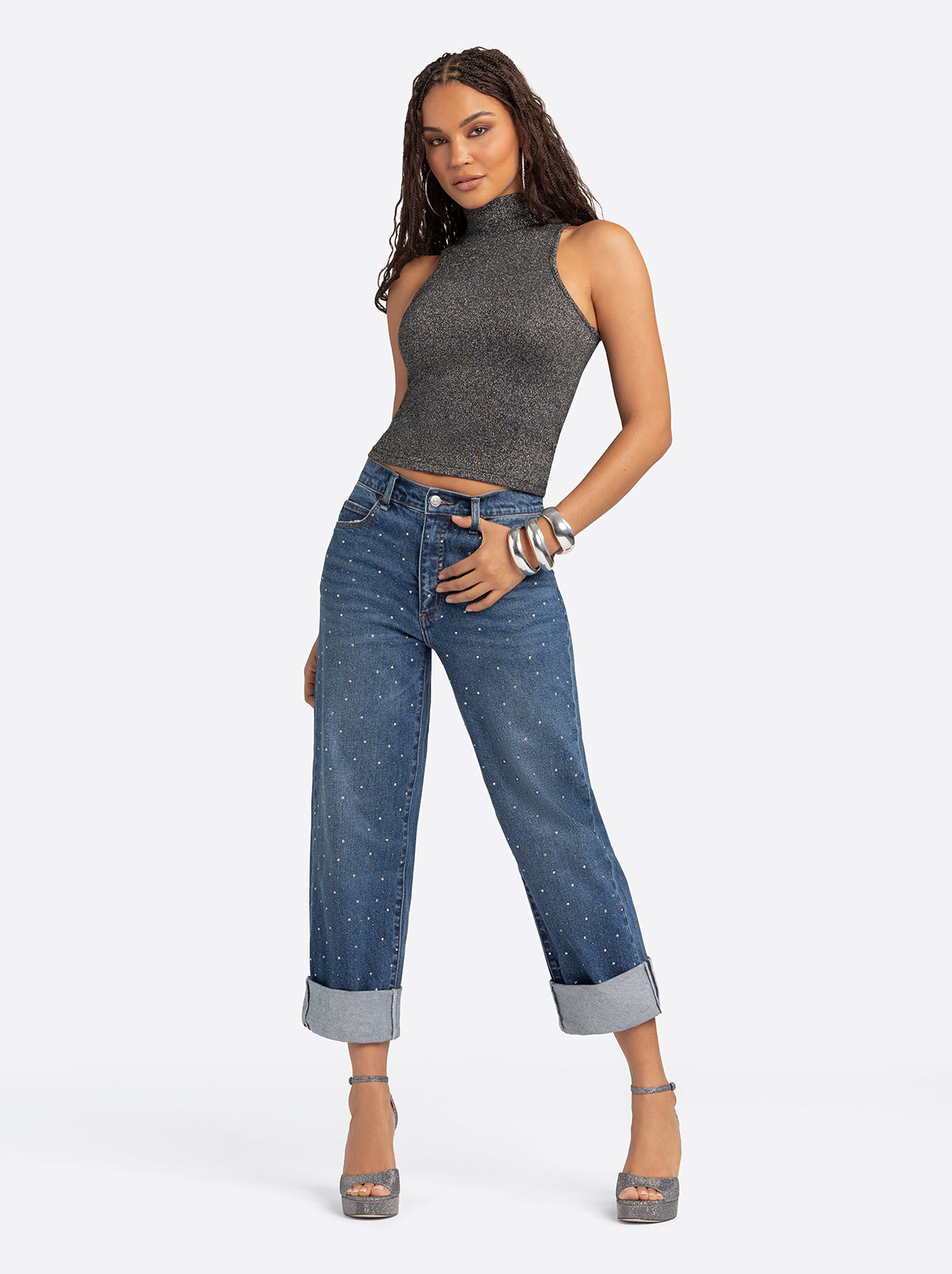 Who says jeans can’t be the life of the party? These stretch denim stunners are sprinkled with twinkling star details that make every step feel like a strut down the runway. Finished with a cool cuffed hem, they’re equal parts laid-back and look-at-me fabulous.