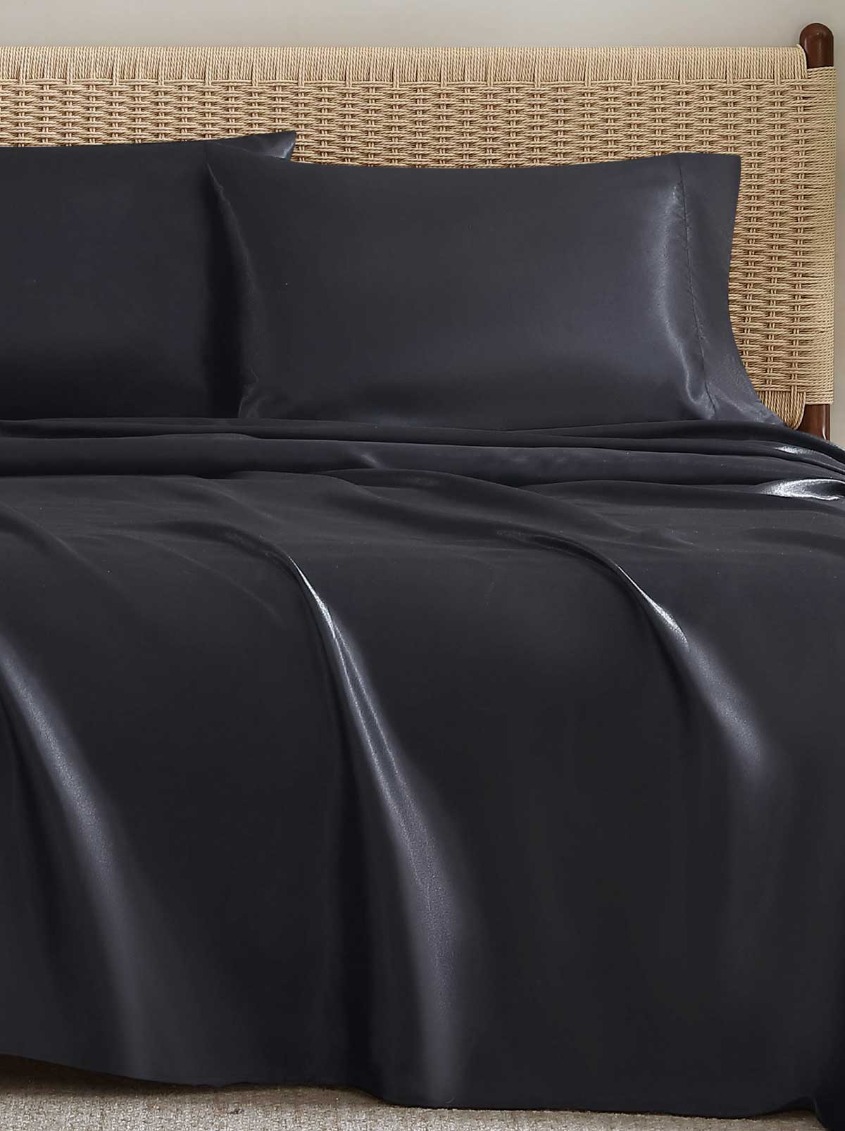 Slip into silky dreams with a smooth touch! The 4-piece set includes: (2) Pillowcases, (1) Flat Sheet, (1) Fitted Sheet.