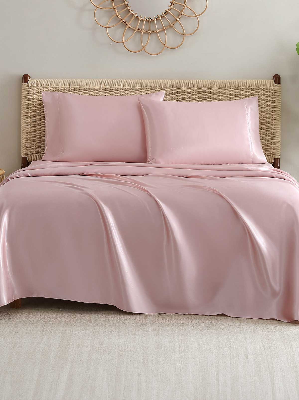 Slip into silky dreams with a smooth touch! The 4-piece set includes: (2) Pillowcases, (1) Flat Sheet, (1) Fitted Sheet..