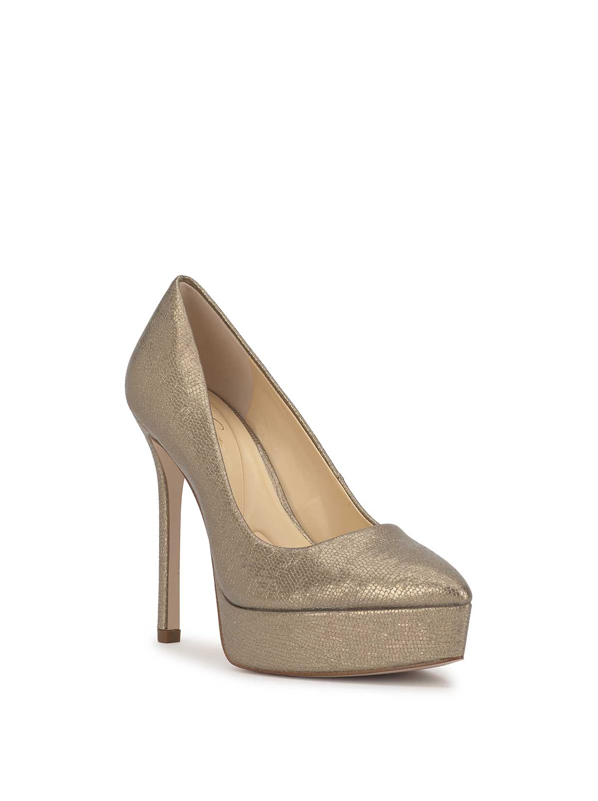 Step into bold sophistication with this stunning platform pump, designed to command attention. Featuring a sleek round toe and a towering stiletto heel, this shoe adds dramatic height while maintaining elegant proportions. The textured, snakeskin-inspired finish lends an exotic touch, creating a luxurious and modern look. Perfect for evenings out, special events, or elevating your everyday ensemble, this pump is a statement piece that exudes confidence and glamour.